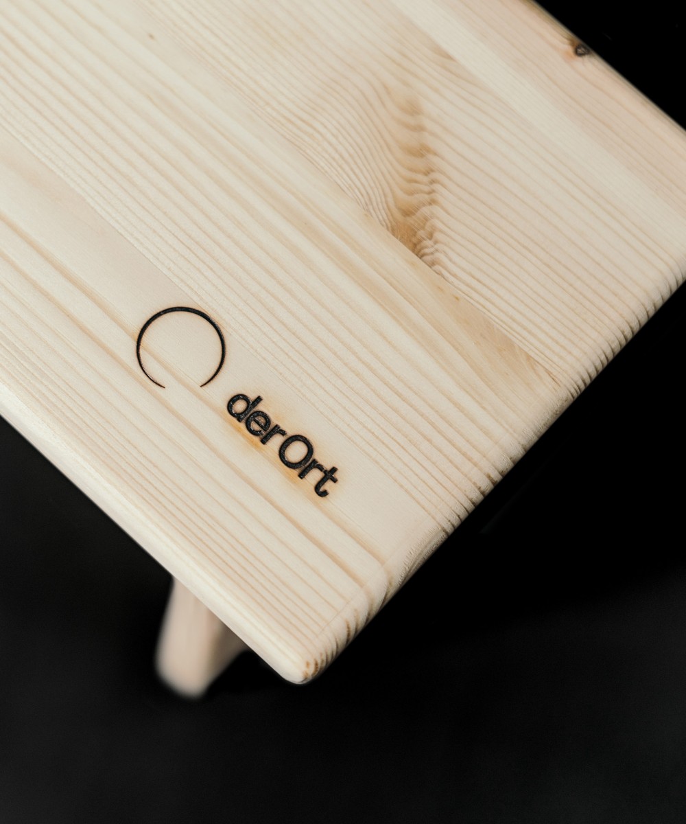 Standfläche gerundet Kiefernholz, geschliffen Handarbeit mit Brandstempel-Logo veredelt