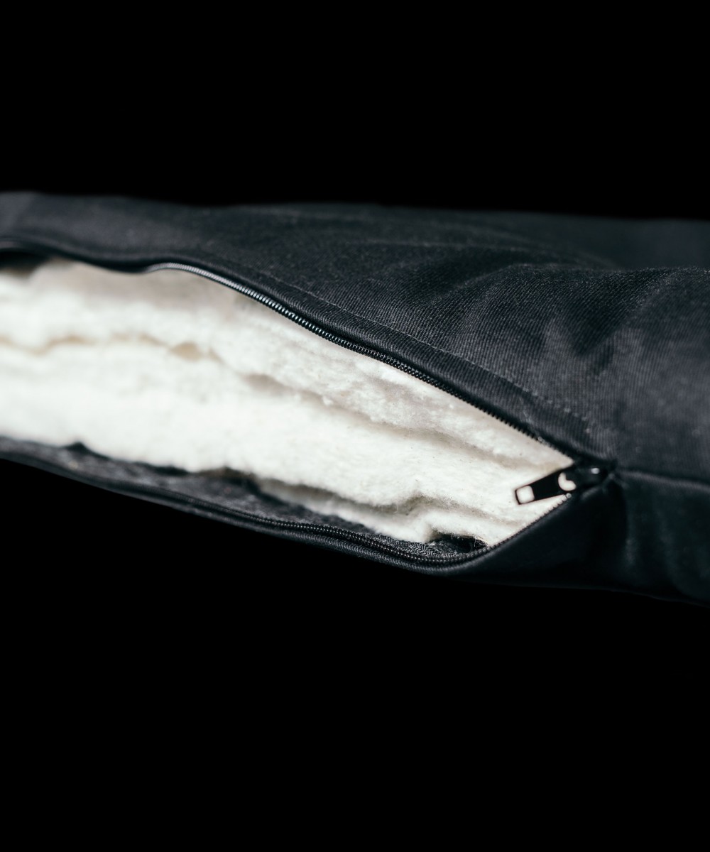 Körper Öko-Baumwolle, schwarz Füllung Baum-/Schurwoll-Vlies fünffach punktversteppt Etikett mit Logo-Stickerei